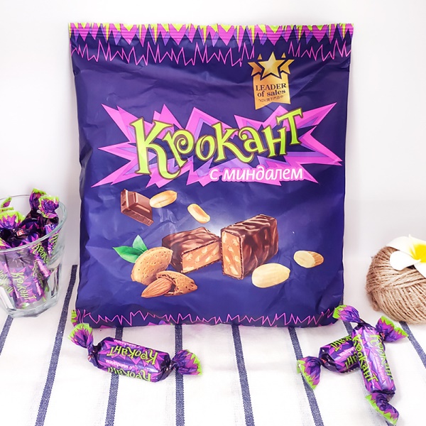 俄罗斯进口KDV紫皮糖巧克力扁桃仁批发代理喜糖夹心糖整箱招代理