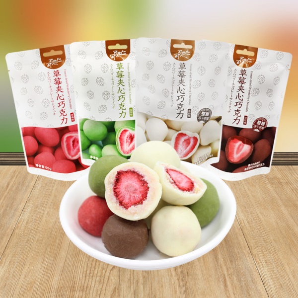梵越伦可可恋仁草莓夹心巧克力60g*40包整箱冻干草莓牛奶抹茶口味