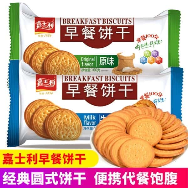 嘉士利早餐饼干100g原味牛奶圆饼代餐充饥饱腹休闲零食 小吃 食品