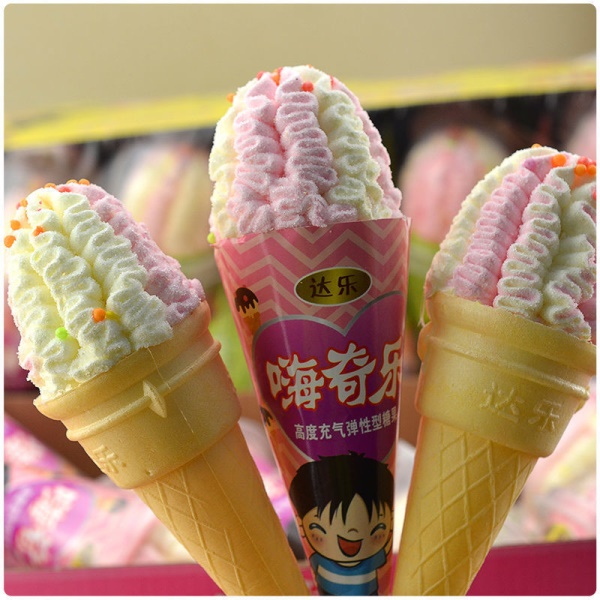 创意可爱冰淇淋冰激凌造型棉花糖甜筒雪糕杯儿童网红零食糖果批发