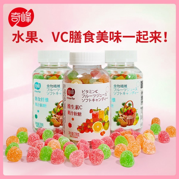 奇峰维生素C膳食纤维果汁软糖儿童橡皮糖混合多口味办公软糖238g
