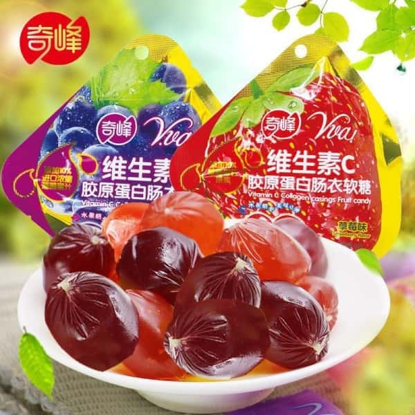 奇峰胶原蛋白肠衣软糖办公维生素C果汁软糖爆浆软糖水果味 40g