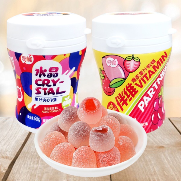 奇峰爆浆果汁软糖68g果汁软糖儿童橡皮糖混合多口味办公软糖