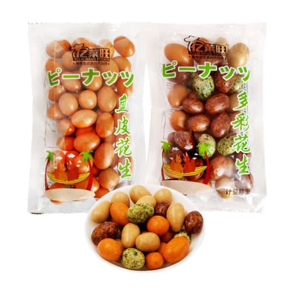包邮亿莱旺多彩花生鱼皮花生脆皮花生裹衣花生散称小包装零食炒货
