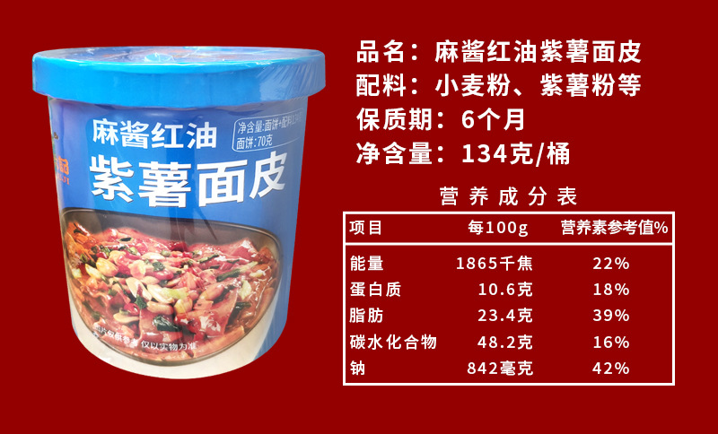 现货麻六记麻酱红油紫薯面皮酸辣粉桶装红薯粉麻辣速食汪小菲张兰