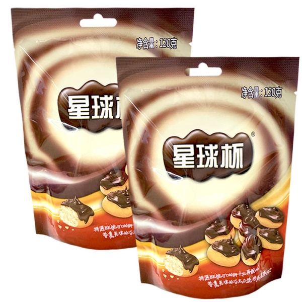 甜甜乐星球杯巧克力酱夹心饼干儿童零食婚庆年货桶装礼物120g/袋