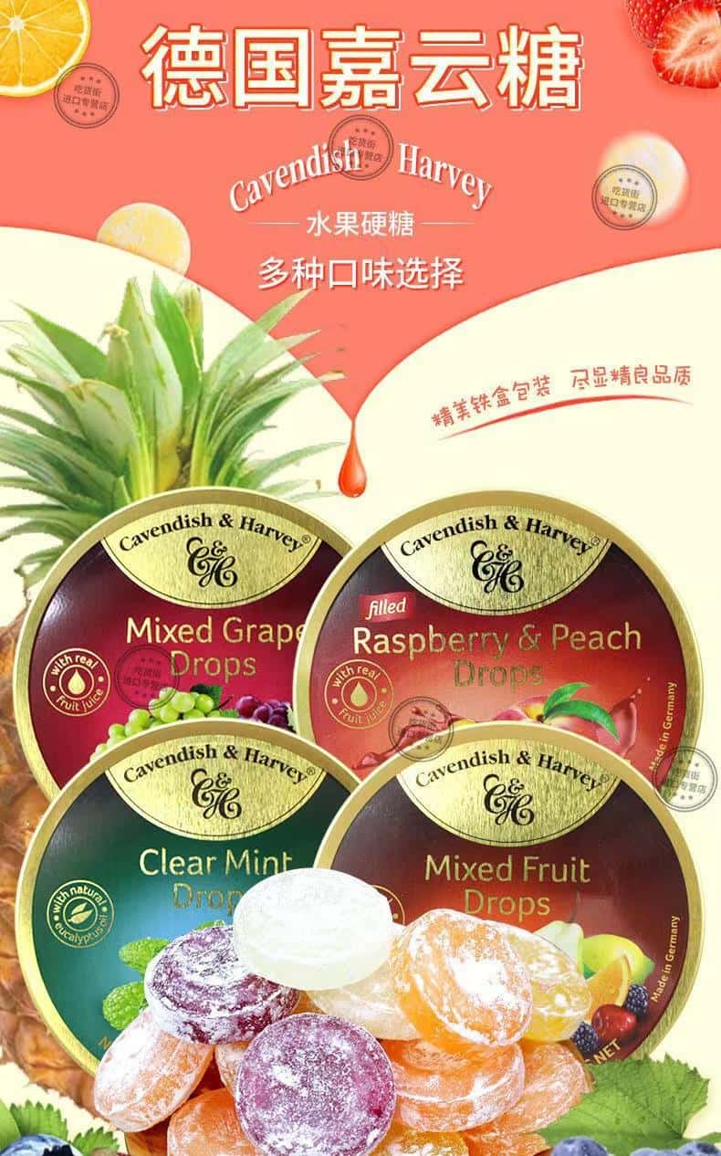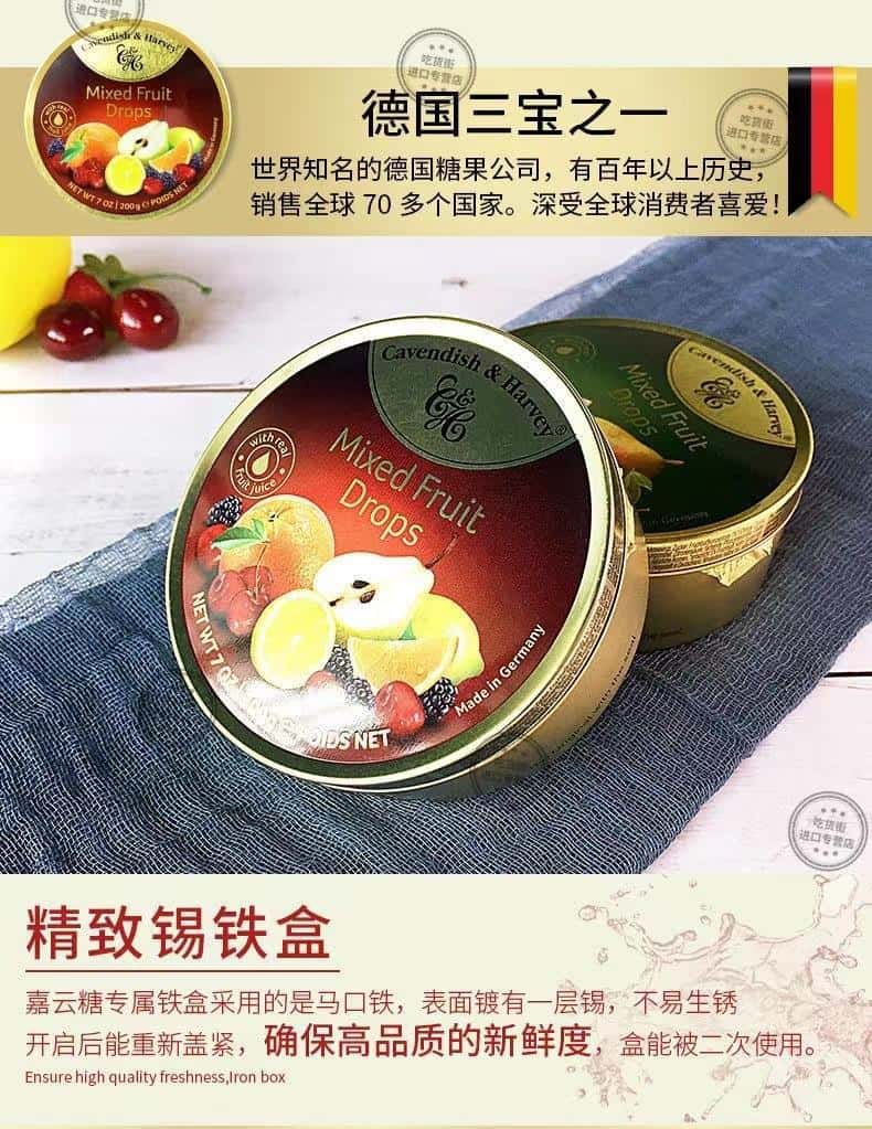 德国进口嘉云水果糖混合水果味嘉云糖薄荷硬糖喜糖铁盒罐礼盒糖果