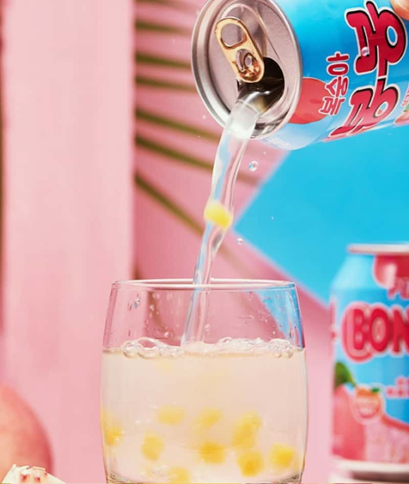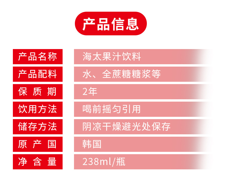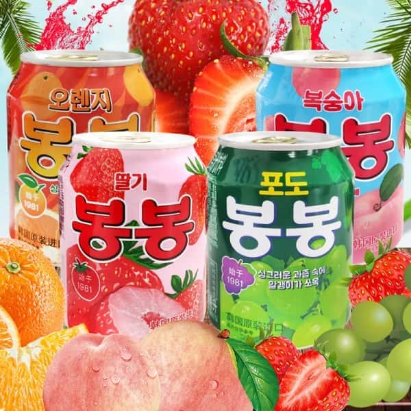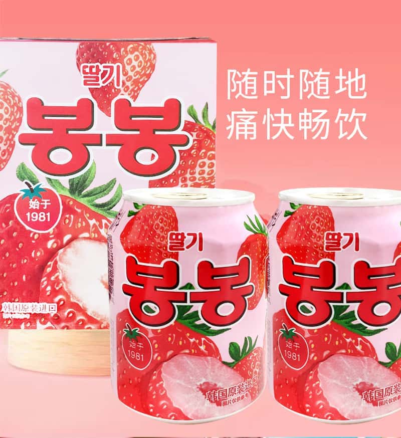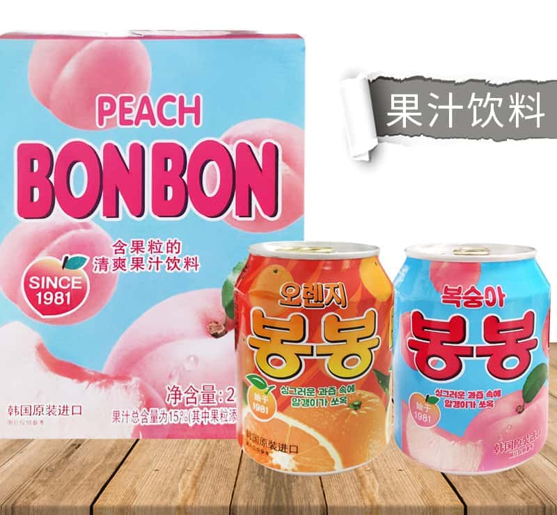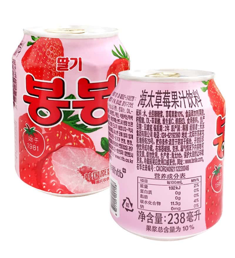 韩国进口网红饮料海太桃汁草莓葡萄果粒果汁果肉238ml/罐休闲饮品
