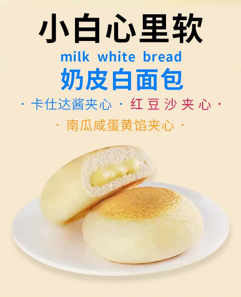 小白心里软奶皮白面包早餐网红牛奶蛋糕卡仕达夹心乳酪休闲小食品