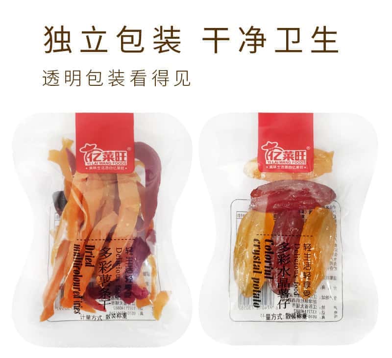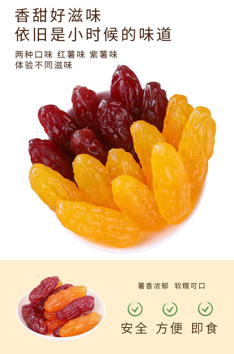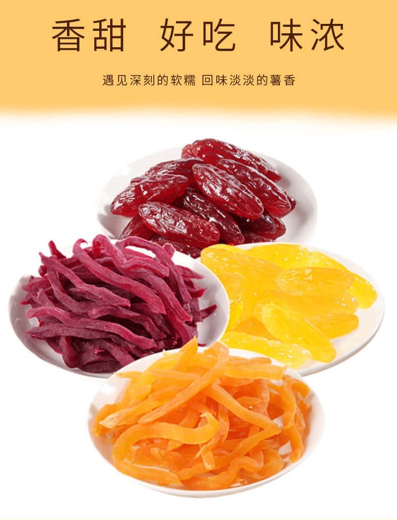 亿莱旺多彩水晶薯仔红薯干紫薯仔蜜饯果脯类零食番薯干地瓜干薯条