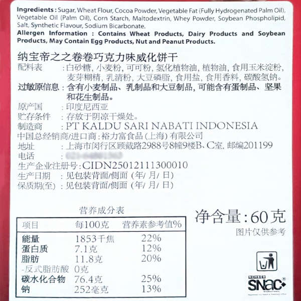 印尼进口丽芝士纳宝帝之之卷卷威化醇香蛋卷饼干60g 休闲零食品