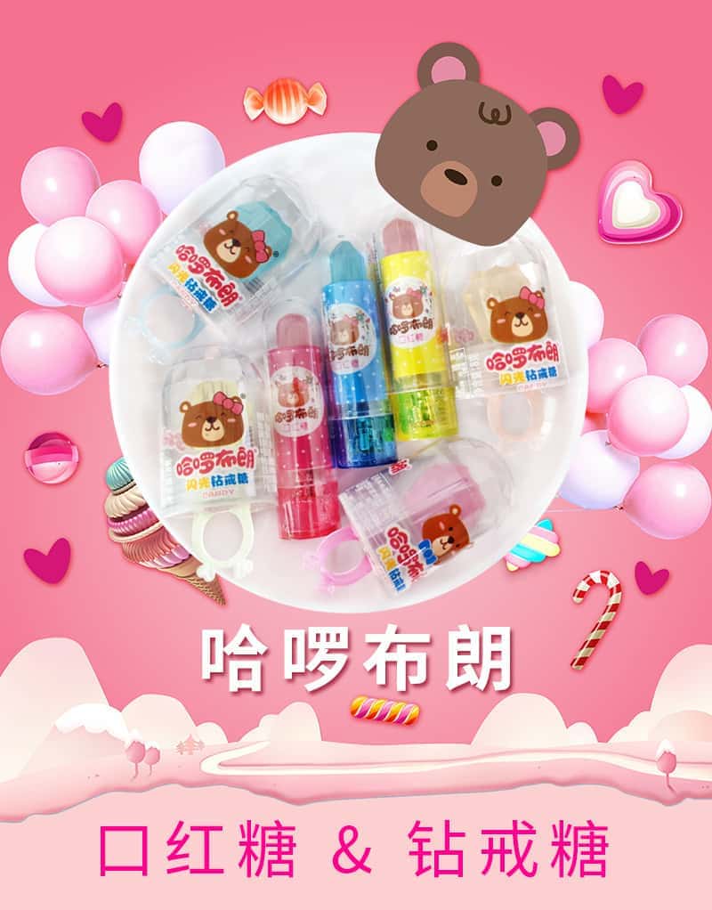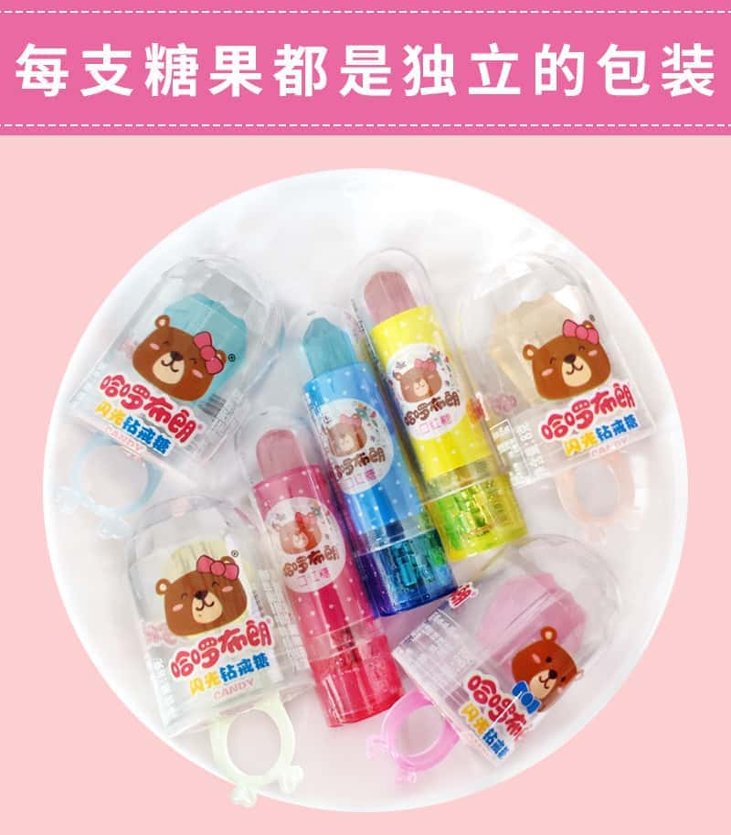 醇然心动哈啰布朗闪光口红糖钻石戒指彩虹糖亮灯口红糖棒棒糖喜糖