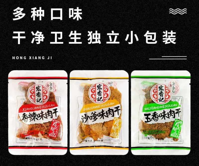 包邮 宏香记肉干枕式香辣五香味猪肉干沙嗲肉片肉类休闲小吃零食