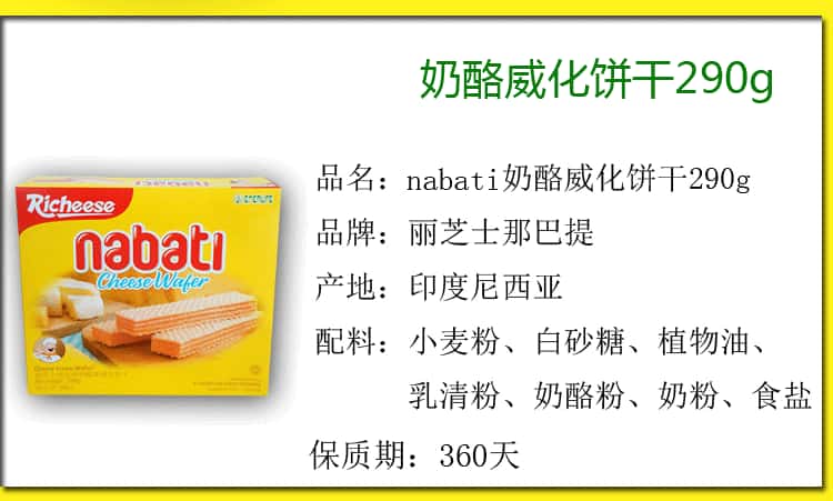 印尼进口richeese丽芝士200g盒纳宝帝奶酪芝士威化饼干整箱批发