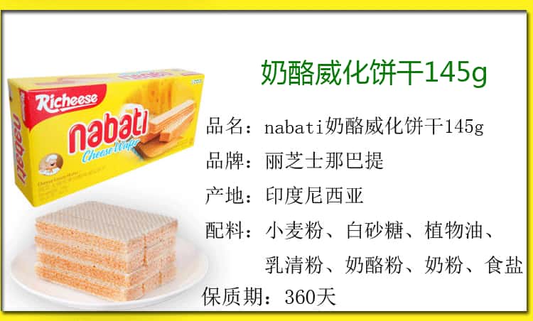 印尼进口丽芝士nabati奶酪芝士威化玉米夹心卷饼干全品相批发