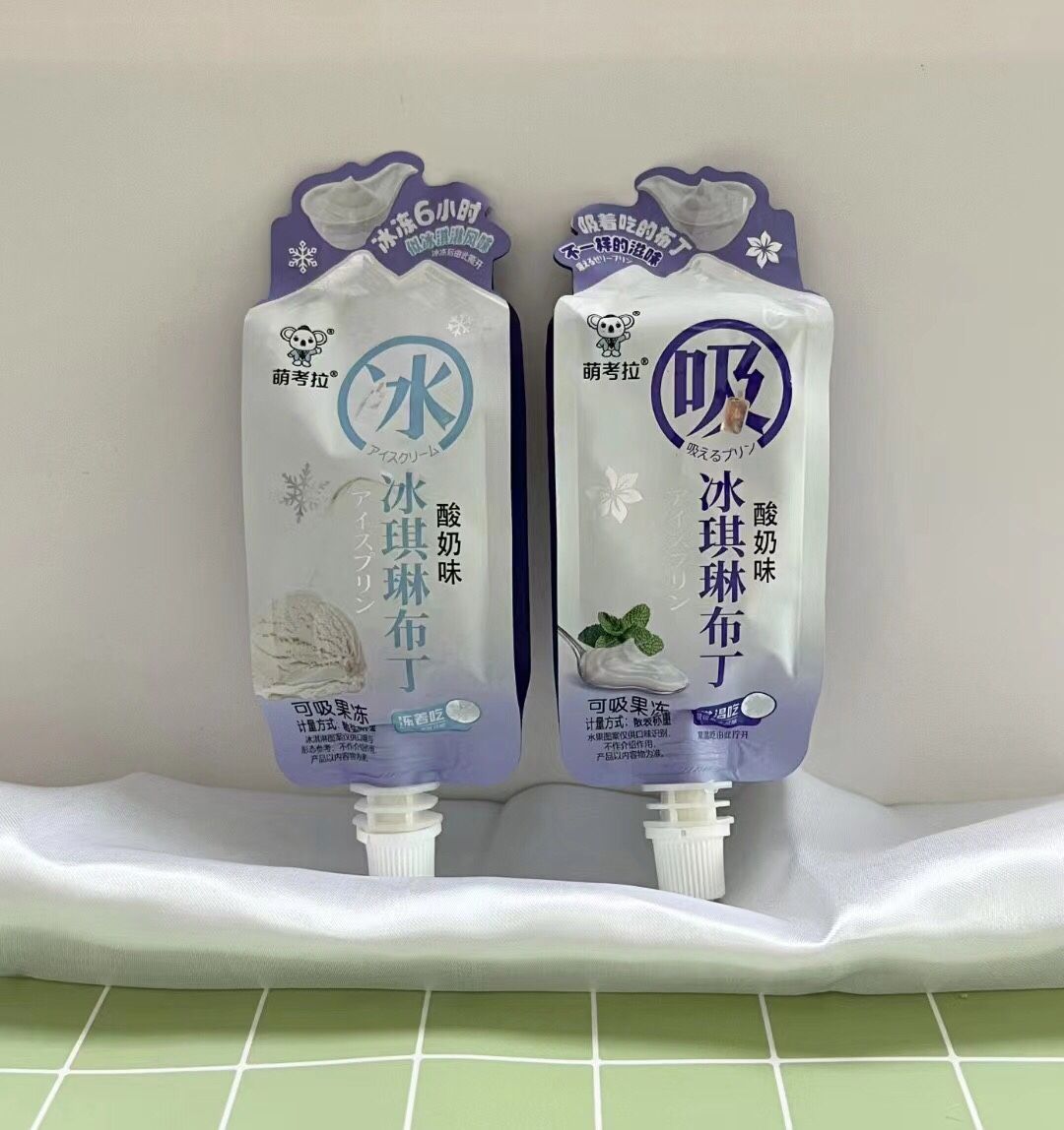 萌考拉冰淇淋布丁吸吸冻冰淇淋两种吃法布丁果冻香草草莓果冻零食