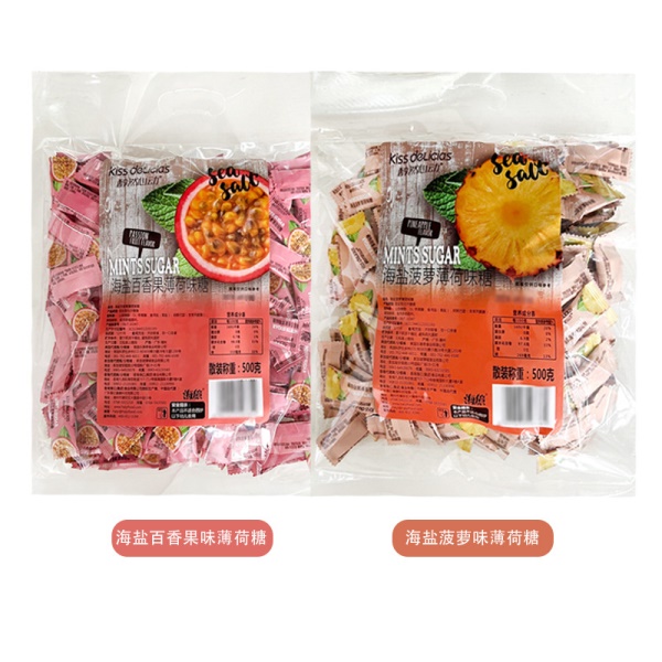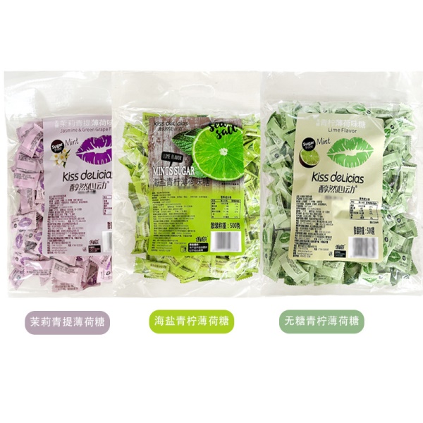 海亿醇然心动薄荷糖500g1斤/袋青柠白桃西柚果味无糖海盐糖果零食