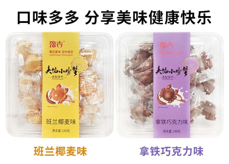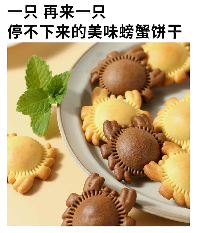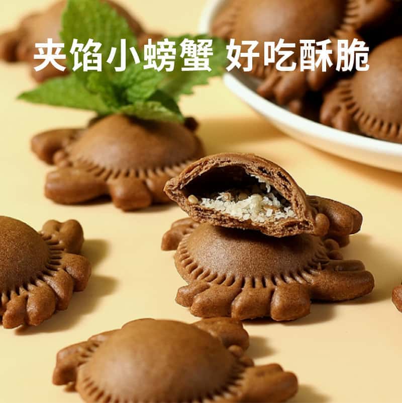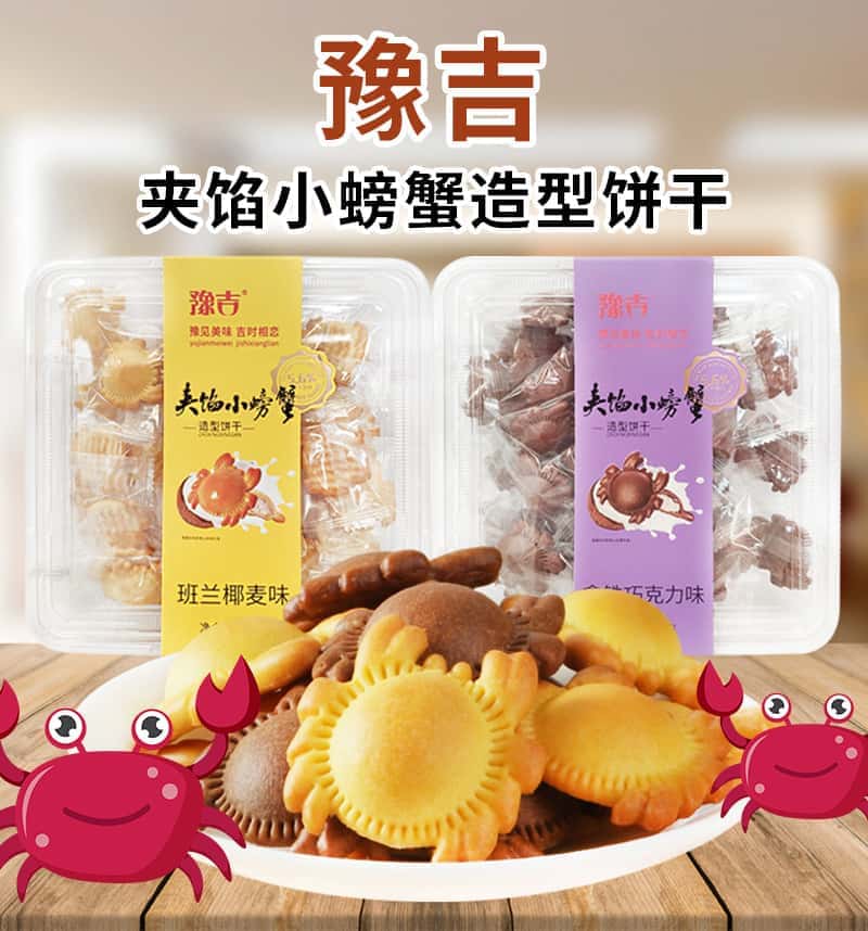 豫吉空心小螃蟹造型饼干140g食品旗舰店巧克力味椰麦饼干零食