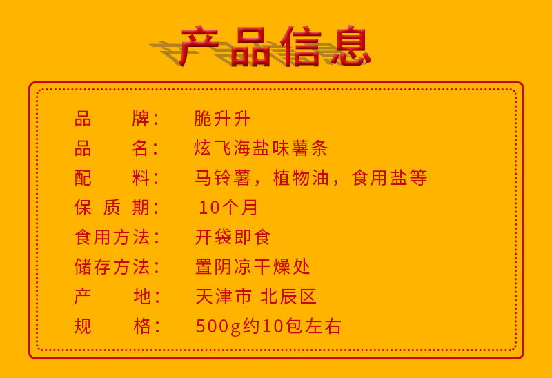 炫飞薯条(海盐味-内附番茄酱包)4斤/箱