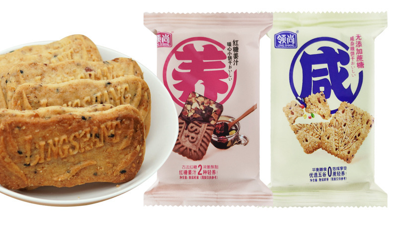 包邮领尚红豆薏米杂粮小奶饼海盐牛奶无蔗糖咸杂粮红糖姜汁饼干