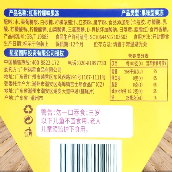 新品萌萌星红茶柠檬味果冻300g/组清凉冰镇凉爽果味果冻布丁
