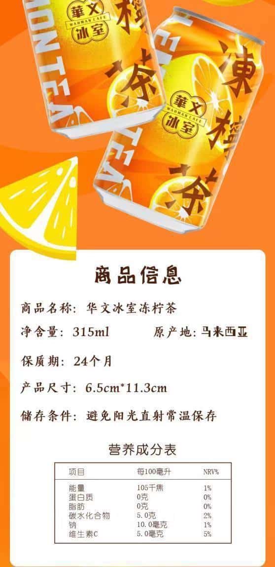 马来西亚进口华文冰室冻柠茶港式口味柠檬茶酸味怀旧解腻饮料315g