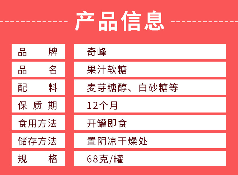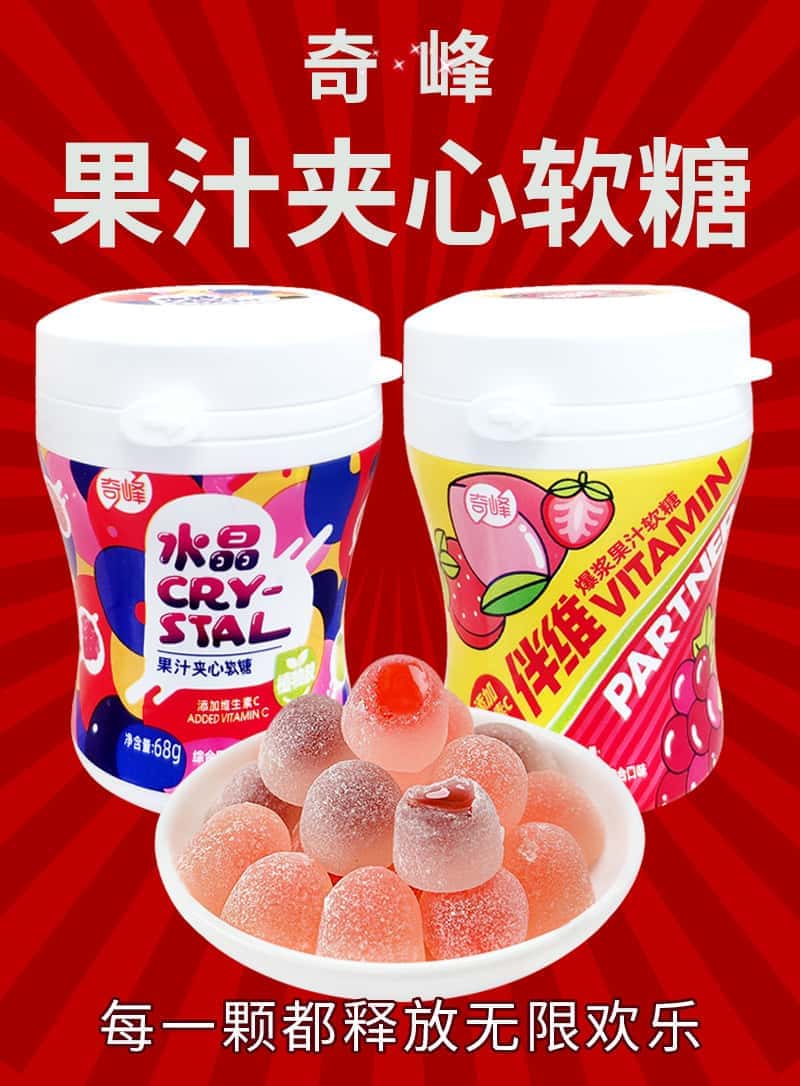 奇峰爆浆果汁软糖68g果汁软糖儿童橡皮糖混合多口味办公软糖