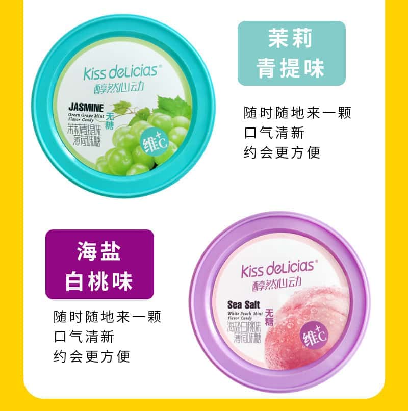 海亿kiss醇然心动薄荷味糖80g多种口味坚实型压片糖果零食 罐装