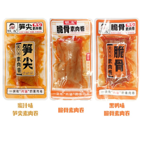 旺友素肉卷五香香辣蜜汁素肉独立小包装素牛肉豆腐干豆脯卤味零食