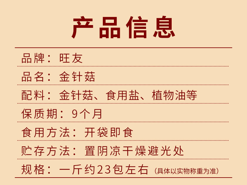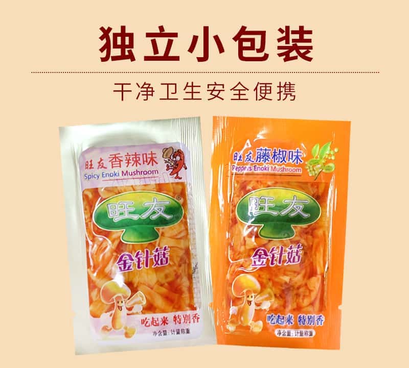 旺友金针菇5斤独立小包装香辣味藤椒味下饭菜批发速食纤维