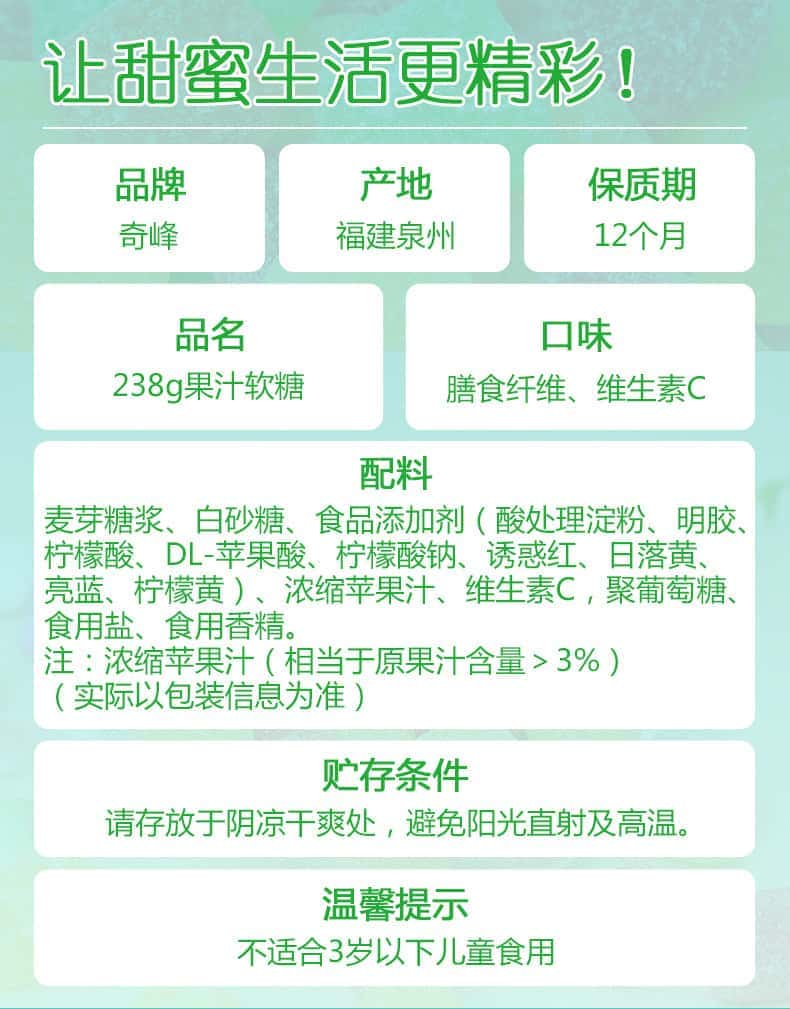 奇峰维生素C膳食纤维果汁软糖儿童橡皮糖混合多口味办公软糖238g