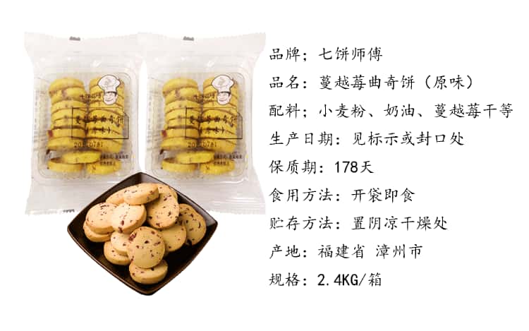 包邮七饼师傅蔓越莓曲奇饼4.8斤/箱太阳堂曲奇饼干手工小饼干零食