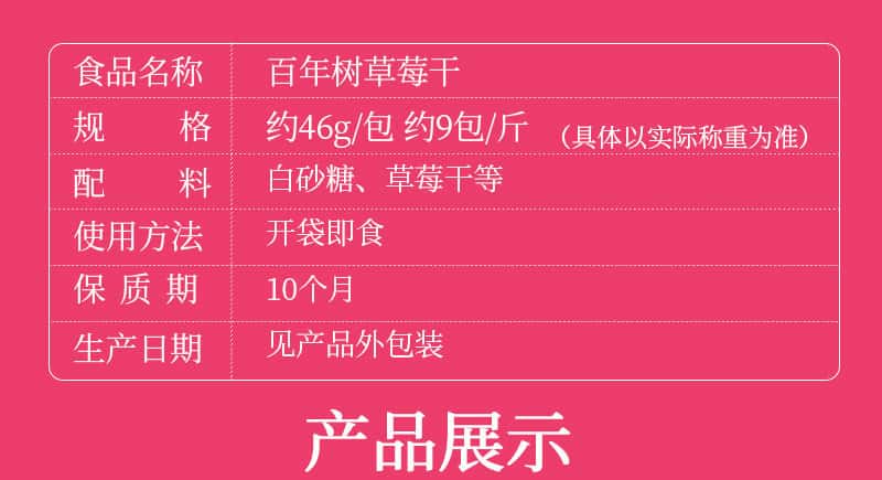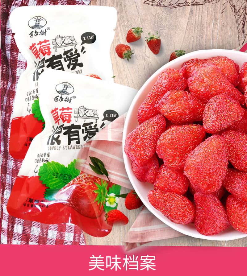 包邮 百年树草莓干果脯蜜饯水果干开袋即食特产风味小吃网红零食
