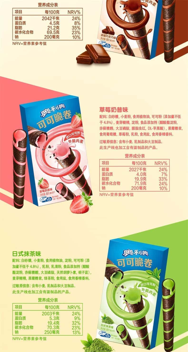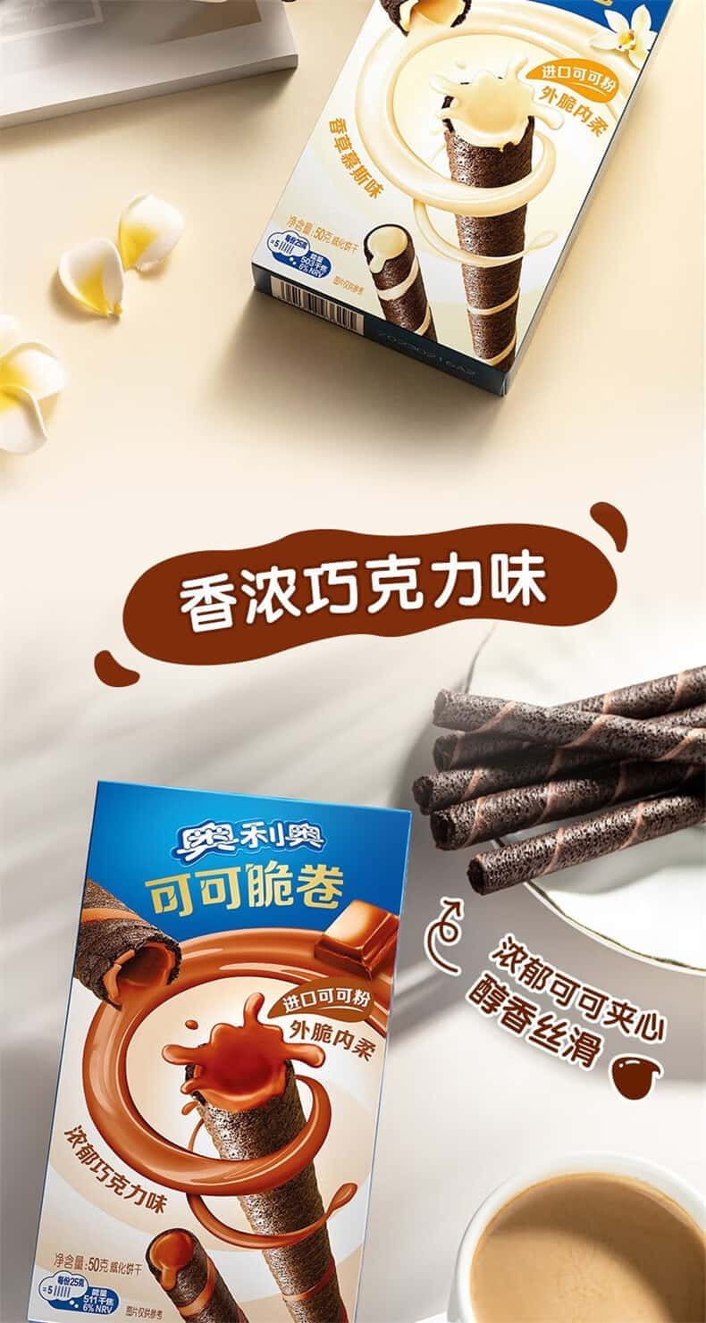 奥利.可可脆卷 50g多种口味网红零食蛋卷威化饼干休闲小吃早餐