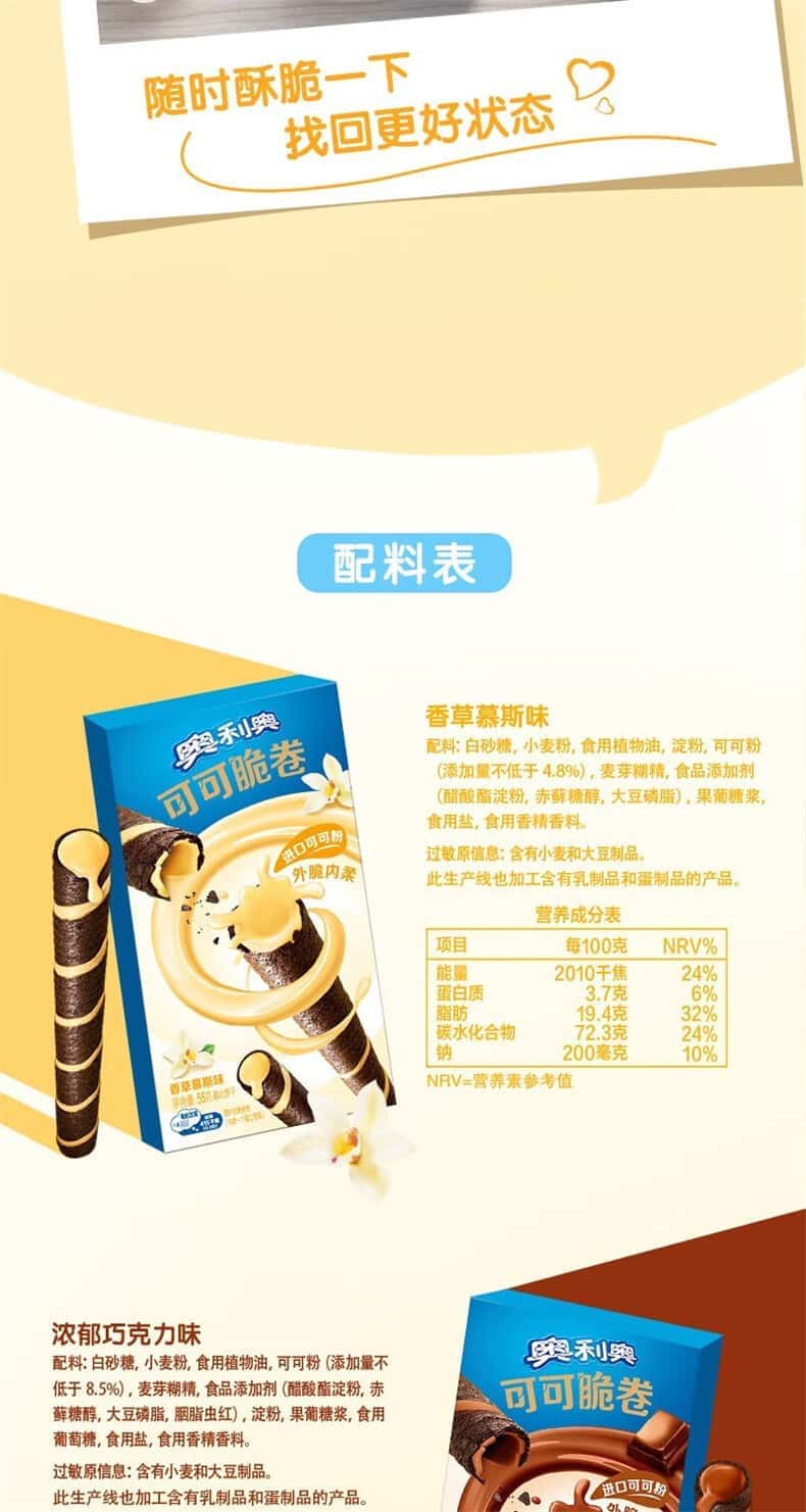 奥利可可脆卷50g香草慕斯味