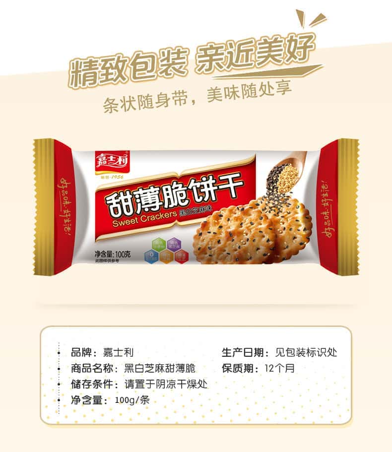 嘉士利薄脆饼干100g黑白芝麻味