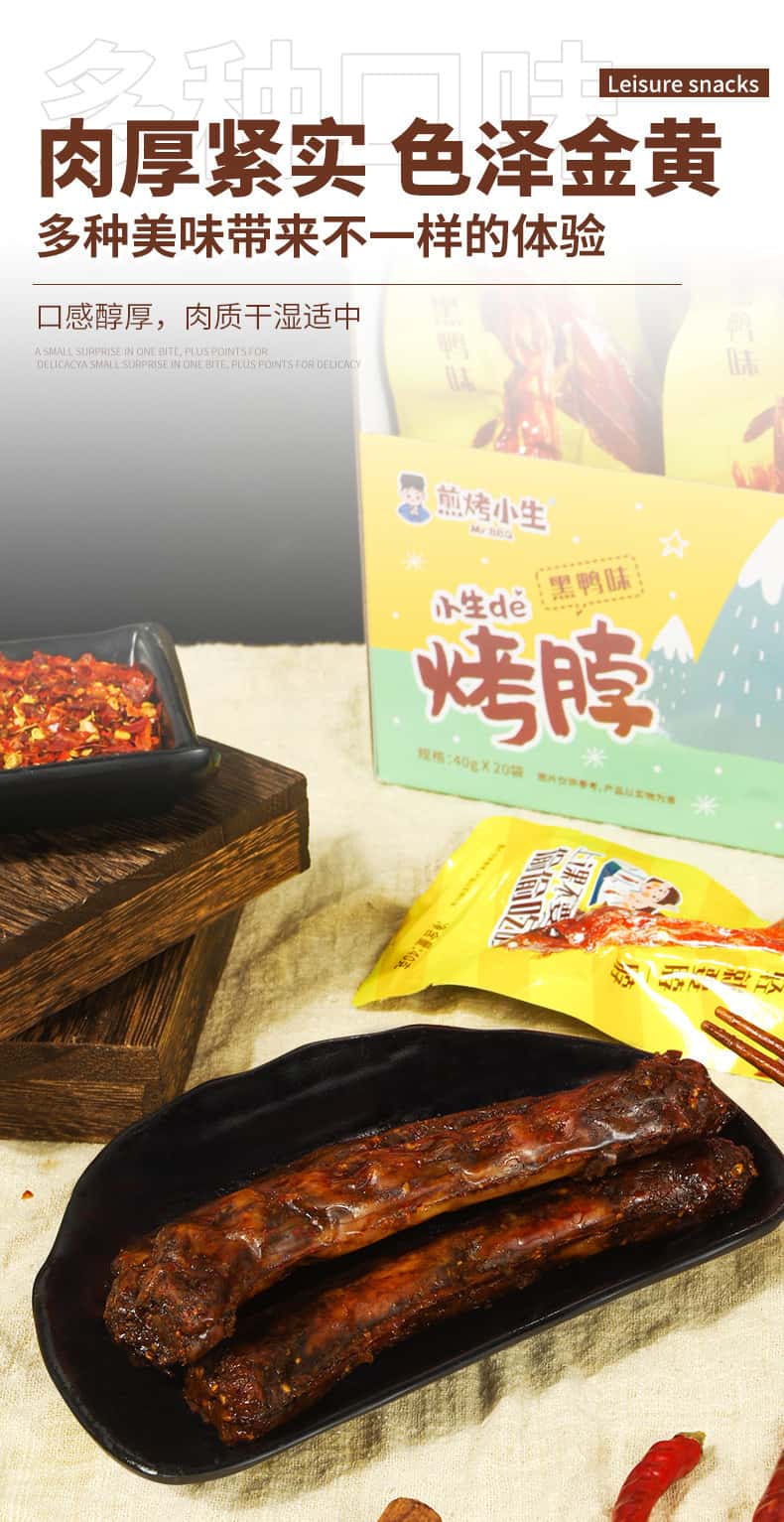 煎烤小生40g烤脖整根非鸭脖手撕风干黑鸭劲辣糖醋肉类 小零食