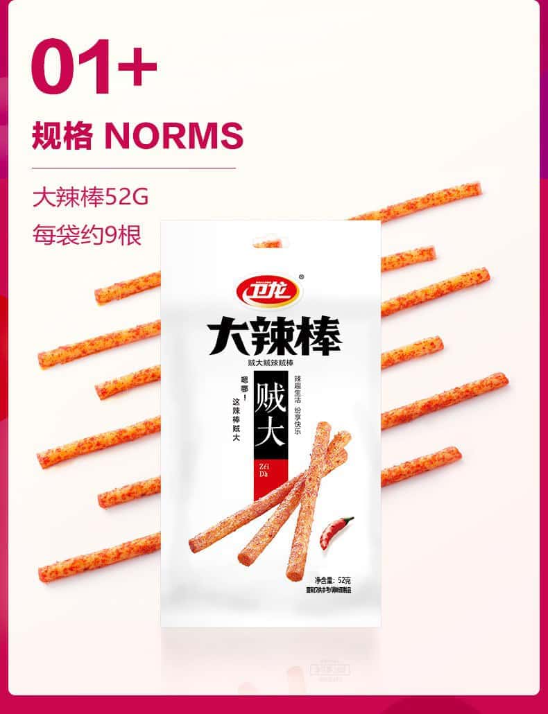大量批发卫龙大面筋65克8090怀旧零食大辣棒78克麻辣休闲小吃整箱