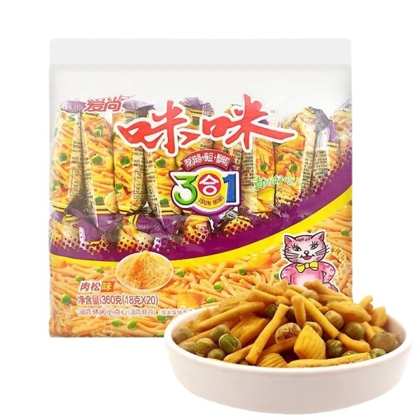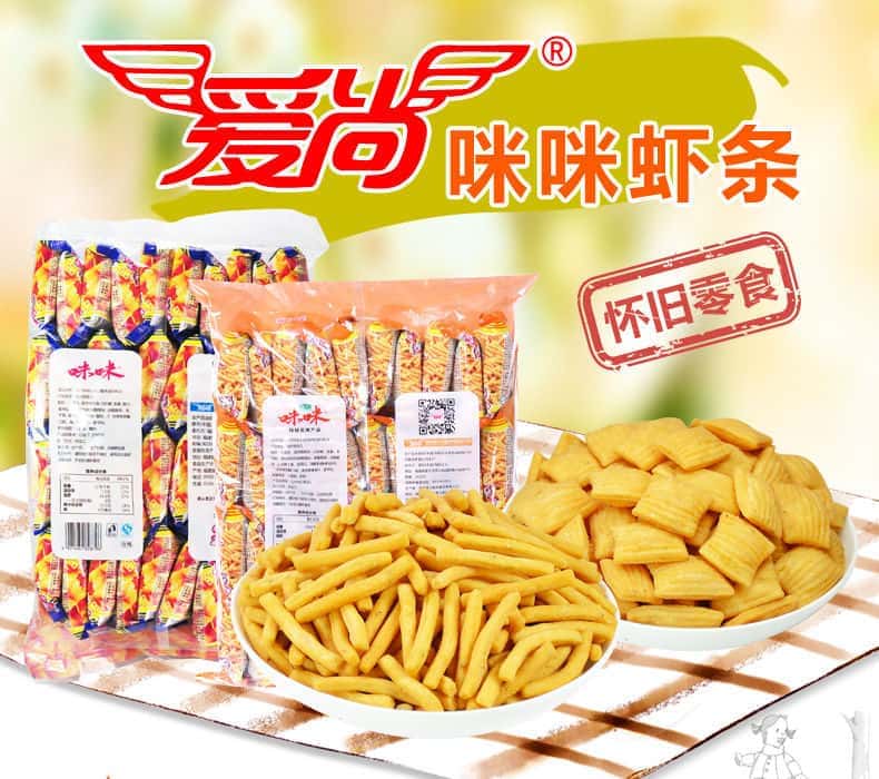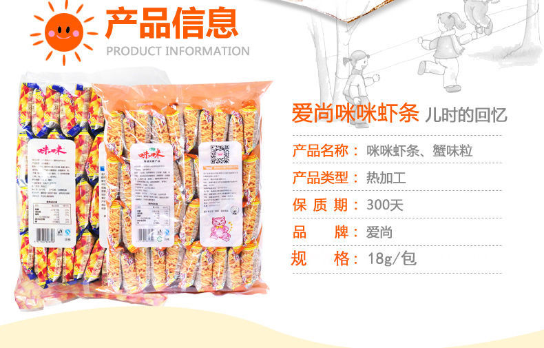 爱尚咪咪虾条整箱批发蟹味粒8090怀旧零食大礼包膨化食品薯条散装