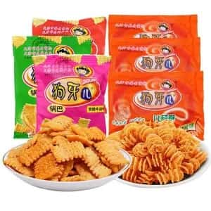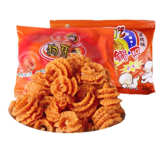 狗牙儿锅巴批发津味比萨卷炭烤味8090怀旧零食大礼包休闲膨化食品