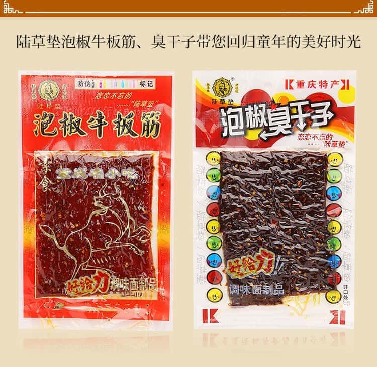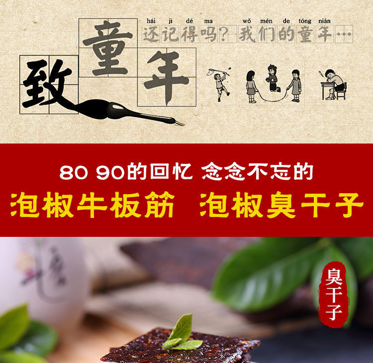 陆草垫泡椒臭干子辣条牛板筋素食大面筋辣条片小零食整箱大量批发