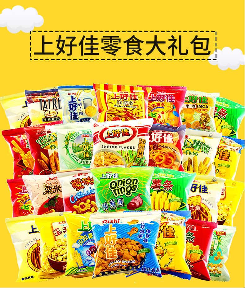 上好佳鲜虾片薯片整箱零食大礼包虾条洋葱圈多口味零食小卖部批发