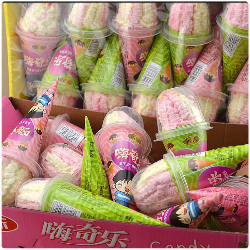 创意可爱冰淇淋冰激凌造型棉花糖甜筒雪糕杯儿童网红零食糖果批发