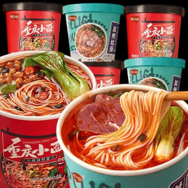 重庆小面懒人泡面网红夜宵速食方便面条兰州拉面板面桶装整箱批发
