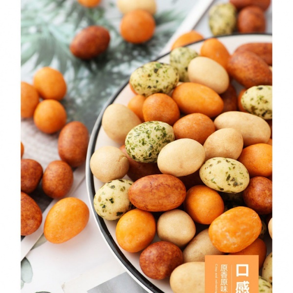 包邮亿莱旺多彩花生鱼皮花生脆皮花生裹衣花生散称小包装零食炒货