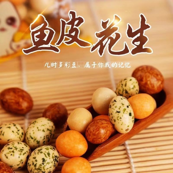 多彩鱼皮花生裹皮花生多味花生海苔花生零食小吃独立包装大量批发