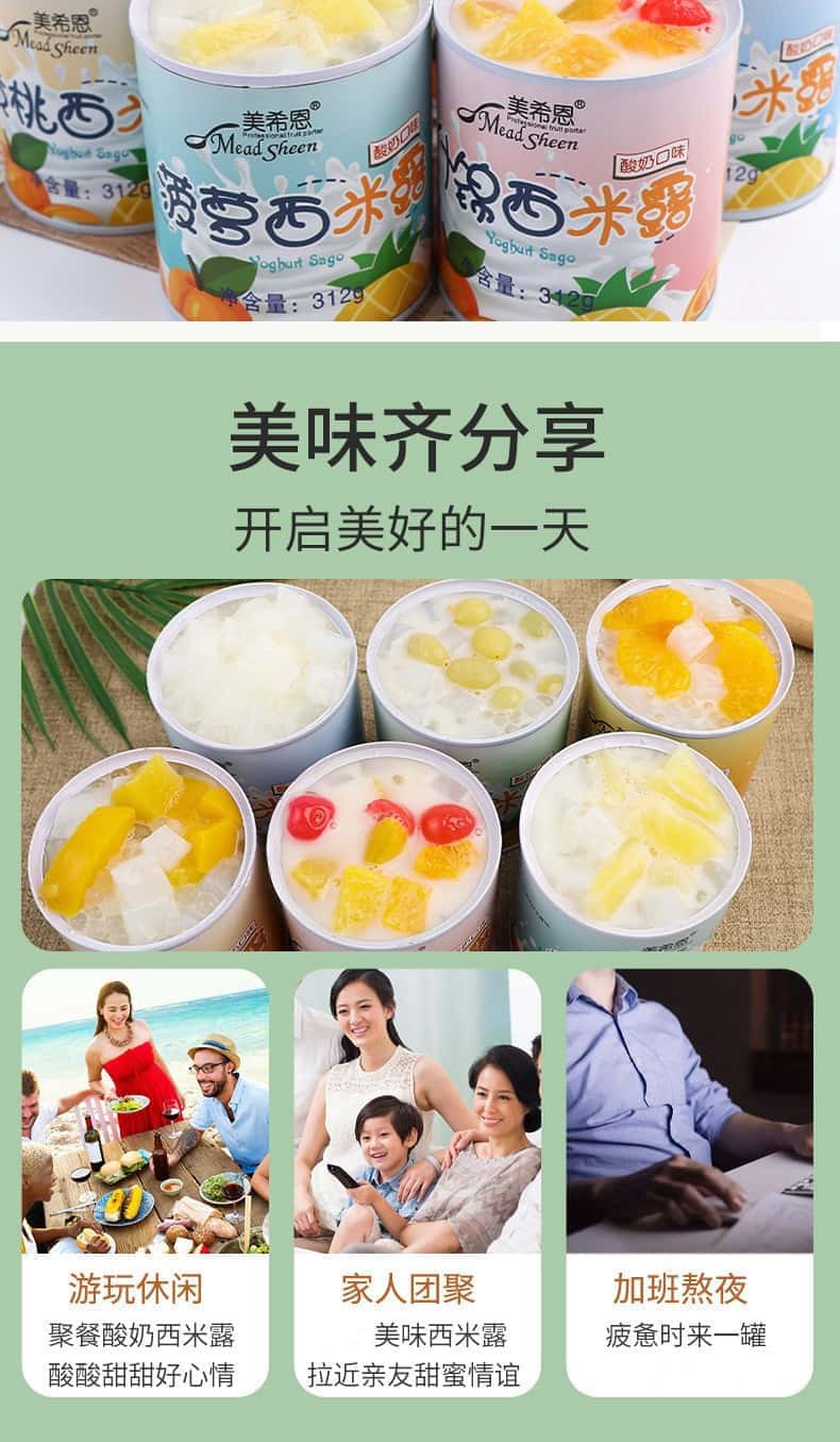 美希恩酸奶西米露罐头水果椰果什锦黄桃罐头混装休闲食品整箱批发